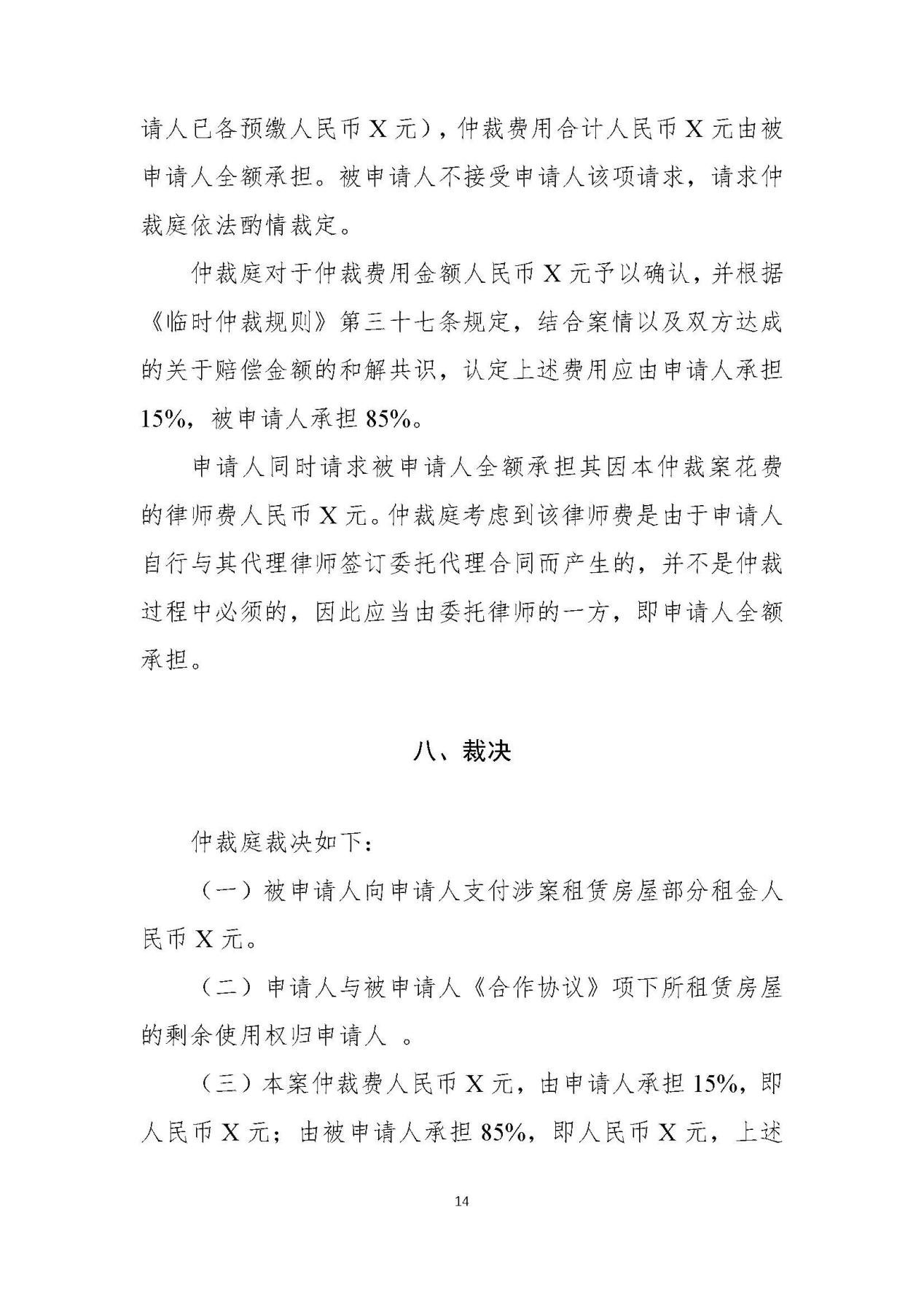 根據雙方當事人約定,并經征求本案仲裁員和雙方當事人意見,現(xiàn)將脫密處理后的裁決書予以公開。