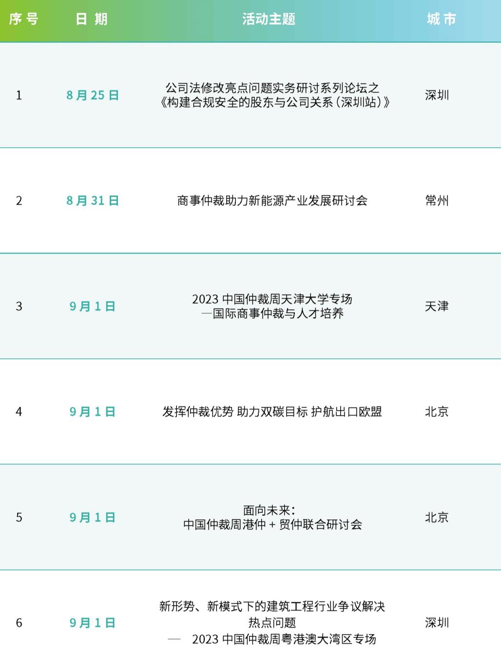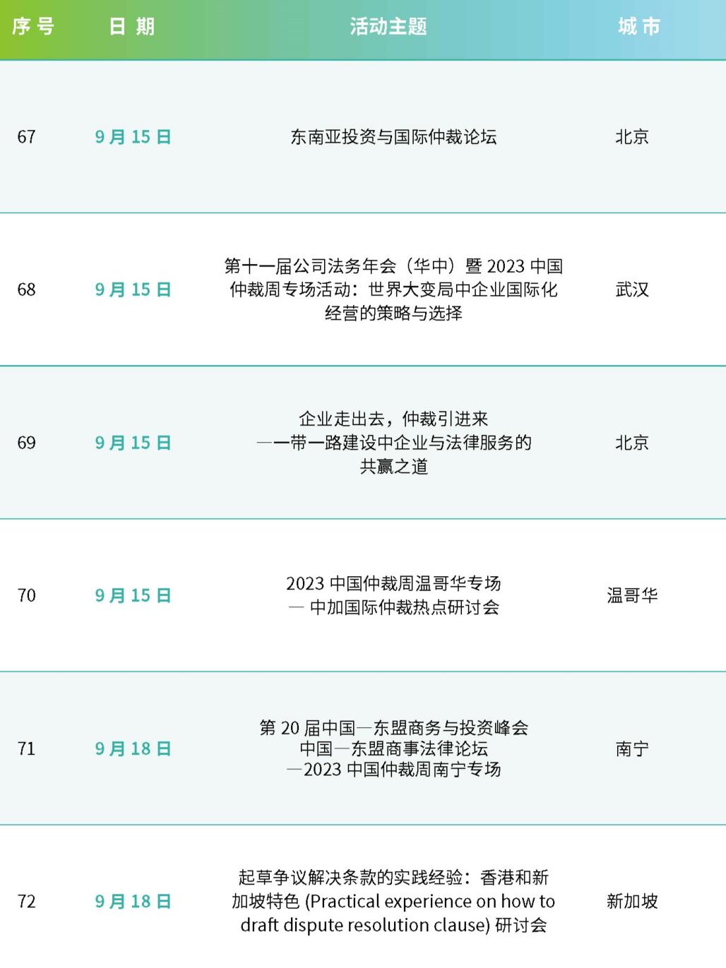 2023中國(guó)仲裁周整體76場(chǎng)活動(dòng)推告