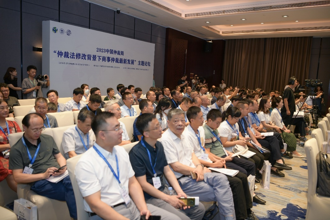 來(lái)自司法部門(mén)、仲裁機(jī)構(gòu)、仲裁員、企業(yè)、公司法務(wù)、律師、高校師生代表等近200人現(xiàn)場(chǎng)參會(huì),超過(guò)33萬(wàn)人次在線觀看了論壇直播。
