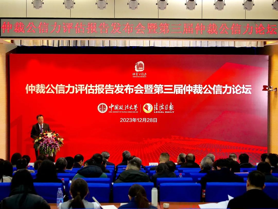 2023年12月28日,仲裁公信力評估報(bào)告發(fā)布會(huì)暨第三屆仲裁公信力論壇在中國政法大學(xué)舉行。全國人大常委會(huì)法制工作委員會(huì)民法室副主任馬正平,司法部公共法律服務(wù)管理局局長楊向斌,最高人民法院法官張梅等國家機(jī)關(guān)代表蒞臨發(fā)布會(huì)。中國政法大學(xué)副校長時(shí)建中,中國法學(xué)會(huì)副會(huì)長、中國政法大學(xué)仲裁研究院理事長黃進(jìn),全國人大常委會(huì)法制工作委員會(huì)民法室原主任賈東明,司法部公共法律服務(wù)管理局二級巡視員石海,法制日報(bào)社編委、法治網(wǎng)總裁萬學(xué)忠以及專家委員會(huì)成員出席發(fā)布會(huì)。全國多家仲裁機(jī)構(gòu)領(lǐng)導(dǎo)、律師與企業(yè)代表、高??蒲腥藛T以及媒體代表參會(huì)。