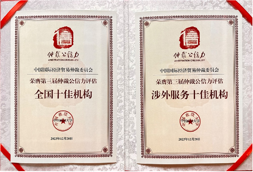 2023年12月28日,在北京舉辦的仲裁公信力評(píng)估報(bào)告發(fā)布會(huì)暨第三屆仲裁公信力論壇上,中國(guó)國(guó)際經(jīng)濟(jì)貿(mào)易仲裁委員會(huì)(以下簡(jiǎn)稱“貿(mào)仲”)獲評(píng)“全國(guó)十佳仲裁機(jī)構(gòu)”和“涉外服務(wù)十佳仲裁機(jī)構(gòu)”雙十佳獎(jiǎng)項(xiàng)。本屆仲裁公信力評(píng)估圍繞“仲裁公信力指數(shù)”和“涉外仲裁服務(wù)指數(shù)”開(kāi)展,貿(mào)仲兩項(xiàng)指標(biāo)分別達(dá)90分和98分,位居雙十佳首位,再獲殊榮,仲裁公信力、涉外服務(wù)優(yōu)勢(shì)獲得廣泛認(rèn)可。