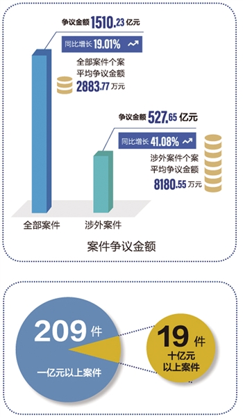 依法公平公正處理當(dāng)事人爭(zhēng)議,是貿(mào)仲委業(yè)務(wù)發(fā)展的重要基礎(chǔ)?!秷?bào)告》顯示,2023年貿(mào)仲委仲裁案件量質(zhì)齊升,新受理案件5237件,同比增長28.17%,爭(zhēng)議金額人民幣1510.23億元(以下幣種均為人民幣),同比增長19.01%,連續(xù)六年破千億元大關(guān),個(gè)案平均爭(zhēng)議金額2883.77萬元,案件數(shù)量和標(biāo)的額均創(chuàng)歷史新高。案件國際化程度持續(xù)提升。案件涉及88個(gè)國家和地區(qū),當(dāng)事人來自71個(gè)國家和地區(qū)。雙方均為境外當(dāng)事人的國際案件62件。2023年首次實(shí)現(xiàn)“一帶一路”案件國別基本全覆蓋。案件程序復(fù)雜多樣。涉及多方當(dāng)事人案件1072宗,占總受案量20.5%;涉及多份合同案件906宗,占總受案量17.3%;涉及追加當(dāng)事人程序案件65件,合并仲裁案件64件。審理方式靈活高效。貿(mào)仲委仲裁庭結(jié)合案情采用大陸法系、英美法系方式審理案件,結(jié)合具體案件情形,靈活采用不同審理方式,依法保證仲裁程序公平正當(dāng),及時(shí)維護(hù)當(dāng)事人合法權(quán)益。案件爭(zhēng)議類型新穎多元。針對(duì)出現(xiàn)的新類型爭(zhēng)議,進(jìn)一步規(guī)范案件分類管理,其中建設(shè)工程、知識(shí)產(chǎn)權(quán)、金融等熱點(diǎn)領(lǐng)域案件增幅明顯。值得注意的是,新類型案件還呈現(xiàn)出新型金融爭(zhēng)議復(fù)雜疑難、案件數(shù)量持續(xù)增長,能源類案件保持增長態(tài)勢(shì),知識(shí)產(chǎn)權(quán)類案件比重增加,ESG等新興領(lǐng)域糾紛進(jìn)入視野等諸多特點(diǎn)。