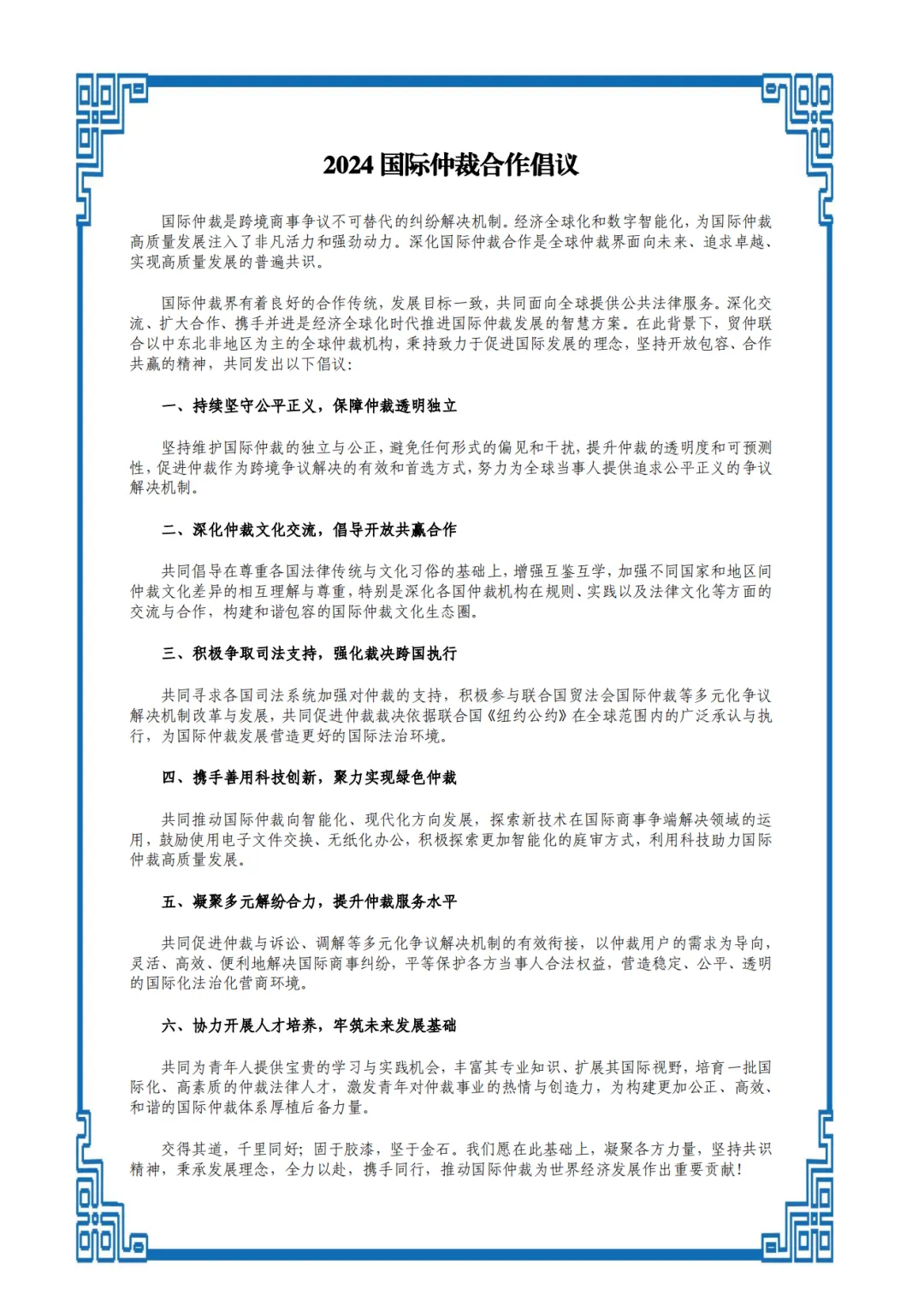 附:《2024國(guó)際仲裁合作倡議》