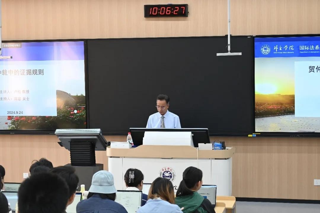 在講座中,主講人盧松教授,作為外交學院國際法系的杰出校友和貿仲《證據指引》的主要制訂者與修訂者,憑借其深厚的法學理論功底與多年的仲裁實務經驗,為聽眾帶來了一場全面而深入的貿仲仲裁證據規(guī)則解析。盧教授首先強調了證據規(guī)則在仲裁過程中的核心地位,并結合具體案例,生動闡釋了證據如何影響仲裁結果的公正性與合理性。而后,盧松教授詳細介紹了貿仲仲裁中證據規(guī)則的制定背景、發(fā)展歷程及主要內容,逐一解析了各項條款的具體含義,重點講解了舉證責任、證據形式、證據交換與質證、證據保全等主要內容,并通過實際案例展示了這些規(guī)則在仲裁實踐中的應用場景與操作細節(jié)。