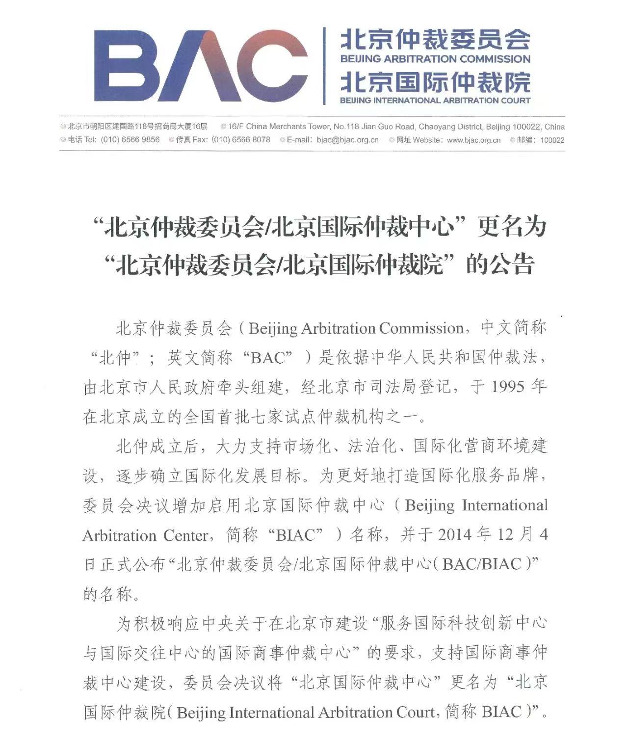 12月10日,記者從“建設國際一流仲裁機構 助力國際商事仲裁中心建設”新聞發(fā)布會上獲悉,為積極響應中央關于在北京市打造“服務國際科技創(chuàng)新中心與國際交往中心建設的國際商事仲裁中心”的要求,支持國際商事仲裁中心建設,經北京市司法局依法變更登記,12月4日“北京仲裁委員會/北京國際仲裁中心”的名稱變更為“北京仲裁委員會/北京國際仲裁院”(以下簡稱北仲)。