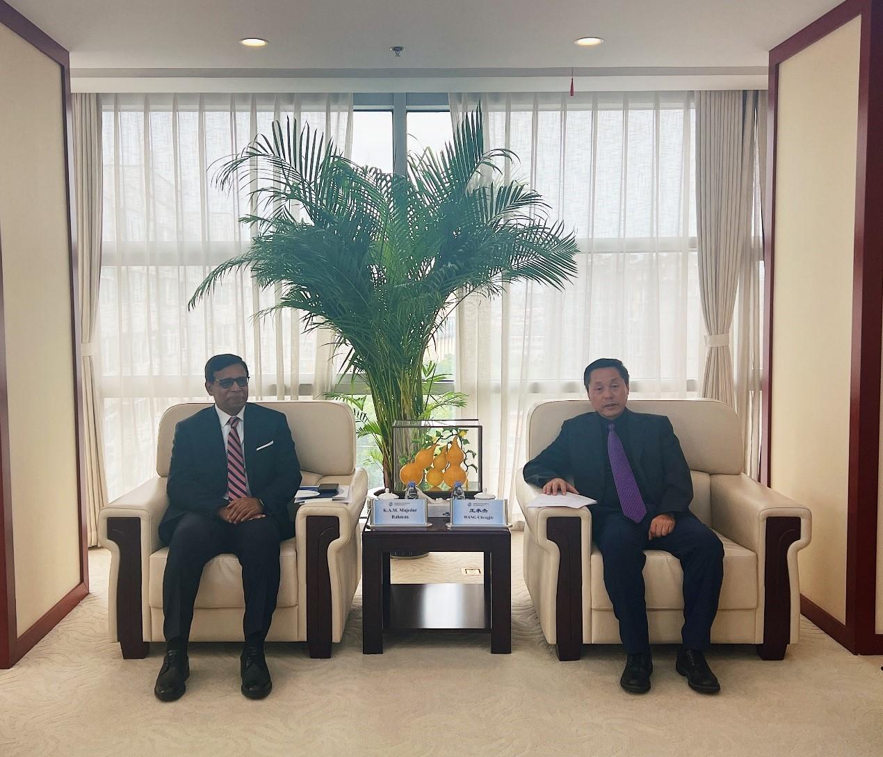 王承杰對K.A.M. Majedur Rahman來訪表示熱烈歡迎,并回顧了機(jī)構(gòu)間近年來的合作情況。他表示,兩機(jī)構(gòu)長期保持友好關(guān)系,雙方于2021年簽署合作協(xié)議,先后通過人員互訪、仲裁員互薦等方式開展了卓有成效的交流。隨著“一帶一路”倡議的深入實(shí)施,中國與南亞地區(qū)經(jīng)貿(mào)往來日益頻繁,當(dāng)事人對高質(zhì)量爭議解決服務(wù)的需求不斷提升。貿(mào)仲持續(xù)優(yōu)化服務(wù)、積極拓展國際合作,機(jī)構(gòu)公信力和國際影響力不斷增強(qiáng)。同時(shí),貿(mào)仲近年來著力推進(jìn)數(shù)字化建設(shè),通過打造智慧仲裁平臺和集成化官網(wǎng),更好地滿足數(shù)字時(shí)代的爭議解決需求。王承杰表示,作為中孟兩國具有代表性的仲裁機(jī)構(gòu),貿(mào)仲與孟加拉國際仲裁中心應(yīng)進(jìn)一步深化合作,共同為兩國乃至南亞地區(qū)當(dāng)事人提供更加優(yōu)質(zhì)的爭議解決服務(wù),推動(dòng)區(qū)域經(jīng)貿(mào)合作與發(fā)展。