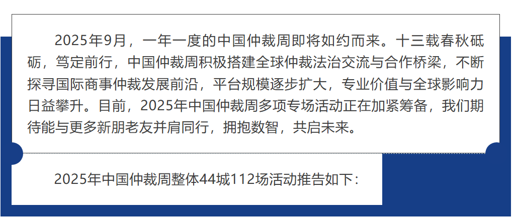 2025中國仲裁周整體44城112場活動(dòng)推告