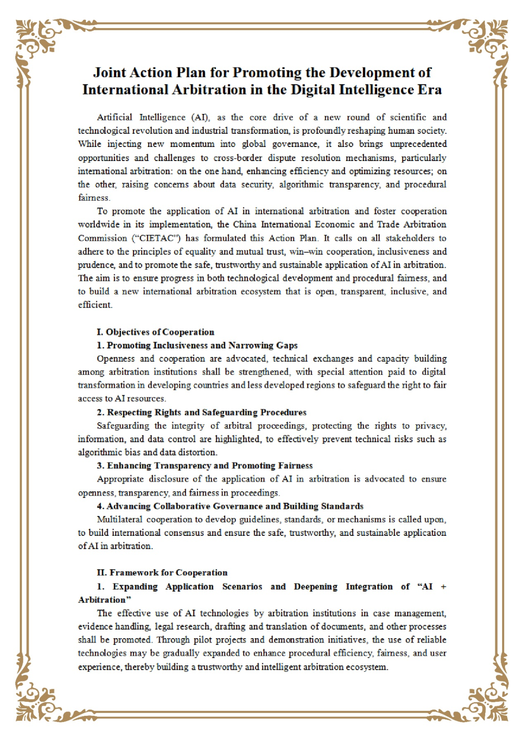 附:《攜手促進(jìn)數(shù)智時代國際仲裁發(fā)展的共同行動計劃》中英文文本