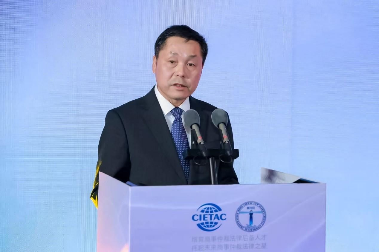 王承杰秘書長(zhǎng)在致辭中回顧了“貿(mào)仲杯”走過(guò)的二十三載發(fā)展歷程。他提出,2000年首屆賽事舉辦之時(shí),中國(guó)正迎來(lái)加入世界貿(mào)易組織的重要?dú)v史節(jié)點(diǎn),而涉外仲裁領(lǐng)域卻面臨“一才難求”的人才困境。為回應(yīng)時(shí)代需求、國(guó)家所需,貿(mào)仲以推動(dòng)中國(guó)仲裁事業(yè)高質(zhì)量發(fā)展為使命,首次將國(guó)際賽事模式系統(tǒng)引入國(guó)內(nèi),以全英文賽題和模擬國(guó)際仲裁機(jī)制開啟了中國(guó)涉外仲裁人才培養(yǎng)的先聲。從“六校起步”到“百校競(jìng)逐”,從“京畿一隅”到“全球矚目”,“貿(mào)仲杯”已成為我國(guó)涉外法治人才培養(yǎng)的重要平臺(tái)。二十余年間,賽事吸引了來(lái)自海內(nèi)外兩百余所高校的兩萬(wàn)余名學(xué)生參與,培養(yǎng)出的佼佼者已成為我國(guó)涉外法治建設(shè)的中堅(jiān)力量。他寄語(yǔ)青年學(xué)子要守住法治初心、練就專業(yè)本領(lǐng)、擔(dān)當(dāng)時(shí)代使命,在未來(lái)的法治征程上行穩(wěn)致遠(yuǎn),并表示貿(mào)仲將繼續(xù)提升賽事國(guó)際化品質(zhì)、專業(yè)化水準(zhǔn)和育人實(shí)效,讓“貿(mào)仲杯”的育人價(jià)值持續(xù)釋放。
