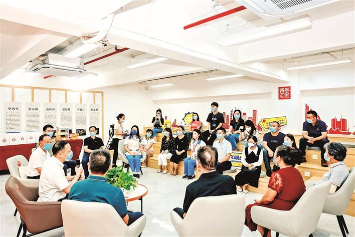 新田社區(qū)“社區(qū)書記茶話會(huì)”現(xiàn)場(chǎng),街坊鄰里一起話創(chuàng)文。