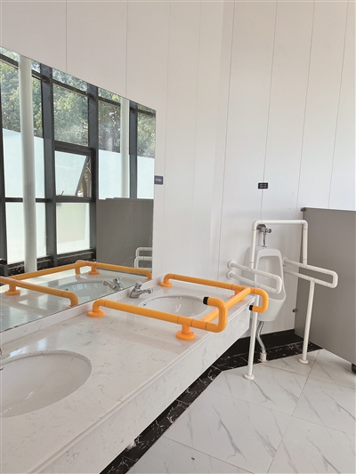 “設(shè)施配套齊全,干凈整潔,造型美觀大方,顏值和功能均‘在線’?!?月14日晚,在市區(qū)東湖公園,飯后散步的市民李發(fā)國告訴記者,去年新建的公廁尤其方便了老人,自己母親身體不好,以前出來玩一會兒就到處找?guī)F(xiàn)在不僅公廁多了,而且全部配建了助老設(shè)施,讓膝蓋不好的母親如廁更輕松舒適。