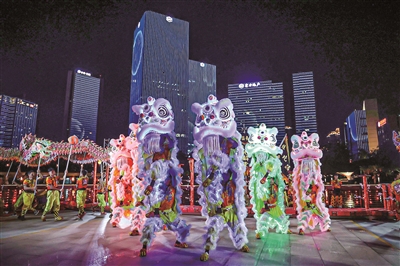 消費(fèi)場(chǎng)景方面,城市燈光秀、周末音樂(lè)匯及《千燈謠》《幻彩耀燈湖》音樂(lè)噴泉水秀等劇目在片區(qū)內(nèi)常態(tài)化展演?!皭偱芄鸪窃匠霾?show出你軌跡”掀起全民打卡熱潮,夜光龍獅薈、千燈湖電光龍舟漂移等活動(dòng)展現(xiàn)傳統(tǒng)文化魅力迅速“火出圈”,既有品牌,又有熱度。