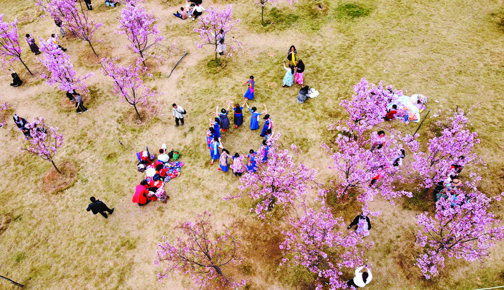 ④每年花季,很多市民都來(lái)園博園賞花“打卡”。