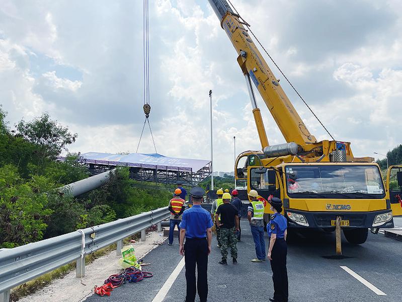 此前,執(zhí)法人員在梳理廣告設(shè)施案件時,整理出一批年久失修且不同程度出現(xiàn)破損、銹蝕、松動等問題的廣告設(shè)施,這些廣告不僅影響市容市貌,還存在極大的安全隱患。為了徹底消除隱患,城管執(zhí)法人員將8處隱患最大的廣告牌列入8月、9月的拆除行動中。為確保拆除行動順利進行,執(zhí)法人員前期多次到現(xiàn)場進行實地勘查、測量,與拆除公司、廣告設(shè)置地所有人確認拆除方法;并對廣告設(shè)置業(yè)主、周邊商戶等講解相關(guān)法律法規(guī),逐戶下發(fā)《拆除溫馨提示》,做好宣傳動員等工作。在實施拆除行動中,執(zhí)法人員往往在天沒亮?xí)r就到達拆除現(xiàn)場,做好警戒隔離。八九月份的南寧天氣高溫炎熱,執(zhí)法人員頂著烈日連續(xù)6~12小時堅守現(xiàn)場,疏導(dǎo)行人車輛繞行,做好現(xiàn)場群眾的解釋工作,最終順利拆除了這8處大型戶外廣告牌。
