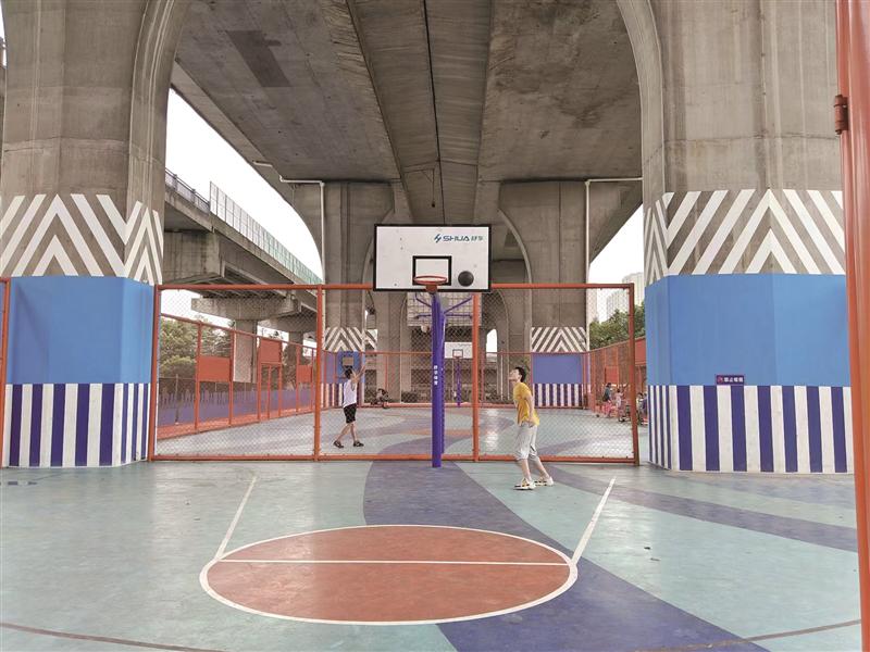 “高架樂園”不僅配備了嶄新的籃球場、棋牌廣場、文化舞臺、滑板場、乒乓球場、健身步道等文體設(shè)施,還在環(huán)境裝飾上融入泰伯藝術(shù)元素、新吳文化特征。經(jīng)過一番裝扮、布置,橋下變成了充滿活力的多彩走廊,明亮熱鬧的體育健身、文娛交流場所?!案脑旌?,橋下整體環(huán)境提升了。”每天都到“高架樂園”練習(xí)跳舞的市民陳松開心地告訴記者,“政府為百姓辦了一件實篤篤的大好事?!?/p>