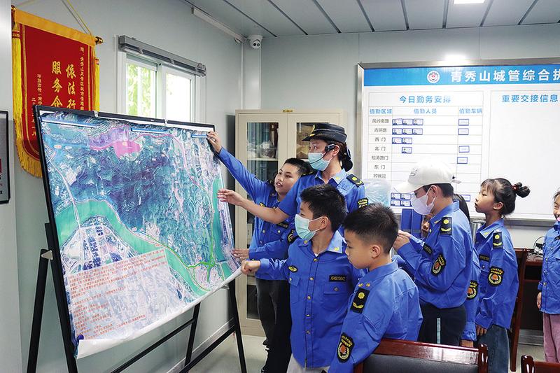 9月17日,南寧晚報(bào)小記者團(tuán)的小記者來(lái)到青秀山城管綜合執(zhí)法隊(duì)開展“喜迎二十大傳承城管藍(lán)”主題活動(dòng)。