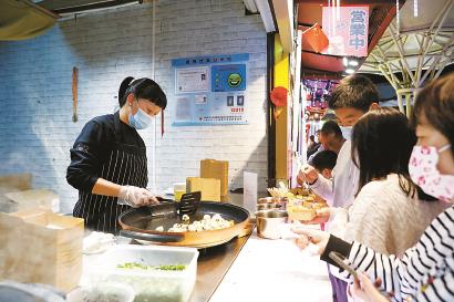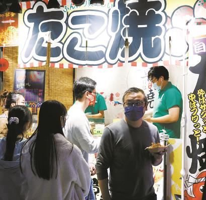 錦江樂園夜市中,顧客購(gòu)買章魚小丸子。 均本報(bào)記者 李茂君 攝
