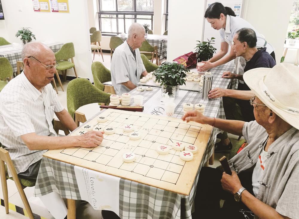 在“物業(yè)+養(yǎng)老”服務中心,老人們下棋娛樂。 本報記者 李家平 攝