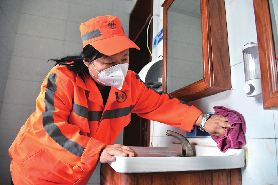 鄭才香管理的這間公廁,始建于2015年,離郵電小區(qū)較近,而這個小區(qū)居住的多為老年人。為給市民創(chuàng)造一個干凈、舒適的如廁環(huán)境,公廁經(jīng)過改裝升級,在門廳處設(shè)置烘干機(jī),并完善了無障礙廁間、報警門鈴及無障礙坡道等方便殘疾人如廁的設(shè)施,同時新增了母嬰室。“我年齡大了,腿腳不好,之前不敢上公廁,怕摔倒?,F(xiàn)在公廁有了扶手,真是太方便了,晚上出來遛彎,我也敢自己去公廁方便了?!苯衲?8歲的李大爺說?!拔覀儠鶕?jù)季節(jié)溫度的變化,靈活增加消殺除臭頻次?,F(xiàn)在我每隔半小時,就會對公廁進(jìn)行一次消毒,做到市民隨手打開一個衛(wèi)生間的門,廁位都是干凈、無異味的?!编嵅畔阈χf,雖然每天從早忙到晚,但她并不覺得累,尤其是當(dāng)她看到行人笑著出入被自己打掃得干干凈凈的公廁,甚至還有市民會主動幫她維護(hù)公廁衛(wèi)生時,她內(nèi)心感到十分欣慰?!笆忻竦姆Q贊,就是對我工作最大的認(rèn)可?!编嵅畔惚硎荆矌拖褚幻骁R子,映射出一座城市的文明程度。她作為一名公廁管理員,要一如既往地打掃好公廁衛(wèi)生,為市民創(chuàng)造一個干凈整潔的如廁環(huán)境,讓公廁成為城市文明的一扇窗口。