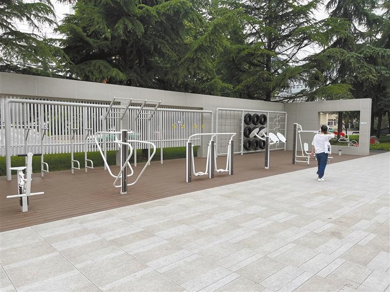 10月17日,記者在改造后的咸陽市咸通綠地廣場看到,這里配有休閑座椅、健身器材等設施,市民在此健身休閑。 本報記者 劉坤攝