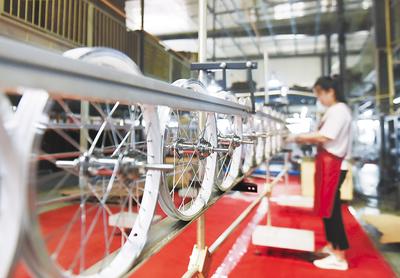 在曲周縣億航童車有限公司生產(chǎn)車間,工人在生產(chǎn)線上工作。 河北日報記者 史晟全攝