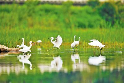 七里河水質(zhì)不斷改善,濕地效應(yīng)逐漸凸顯,引得多種水鳥棲息,構(gòu)成一幅和諧的生態(tài)畫卷。