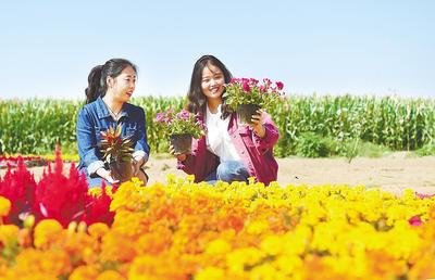 在七里河下游邢臺市南和區(qū)一處花卉基地,市民在選購鮮花。