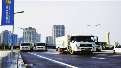 為了提高清掃保潔質(zhì)量,2015年,市政府投資1.8億元采購了一批先進的環(huán)衛(wèi)機械設(shè)備,三區(qū)清洗、清掃、灑水、沖洗、噴霧等車輛達到430臺套,徹底改變了原來由環(huán)衛(wèi)工人掄大掃把掃街的模式,形成了以“沖、洗、掃、收”加人工保潔的“4+1”環(huán)衛(wèi)作業(yè)模式。機械化沖洗路面徹底取代環(huán)衛(wèi)工人掃把干掃的人工清潔,把環(huán)衛(wèi)工人解放出來,去從事綠化帶、行道樹坑衛(wèi)生的清潔和道路保潔、城市家具擦拭等工作,降低環(huán)衛(wèi)工人的勞動強度,提高了整個城市的潔凈度和空氣濕度,清掃保潔呈現(xiàn)出立體化、全方位、全覆蓋作業(yè)的新模式。