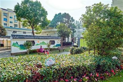 “微更新90%的內(nèi)容,都是居民自己完成的?!睘轫?xiàng)目提供專(zhuān)業(yè)藝術(shù)支持的王翔威介紹,設(shè)計(jì)師經(jīng)與居民討論確定喜愛(ài)的江南風(fēng)格圖畫(huà),并在墻上用鉛筆打稿,隨后由“香楠路家園守護(hù)隊(duì)”及其他居民耗時(shí)2周時(shí)間,完成全部墻繪上色。此外,居民文藝骨干還發(fā)揮主觀能動(dòng)性,在廣場(chǎng)正中一座小亭子的立柱上,添上內(nèi)容為“露潤(rùn)香園浮瑞色 霜含雅韻掛繁英”的對(duì)聯(lián),使環(huán)境再添幾分“文氣”。長(zhǎng)廊、粉墻、拱門(mén),墻上的“小橋流水”,外加紅杏樹(shù)、柳樹(shù)、風(fēng)信子等景致,讓人仿佛“誤入”一座簡(jiǎn)約版的江南園林。
