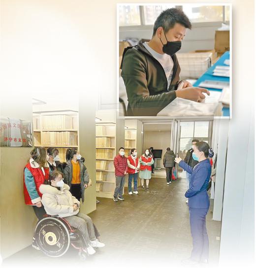 下圖:在濟(jì)寧市圖書館內(nèi),工作人員正在介紹圖書館中的無障礙設(shè)施。 馬儀 攝