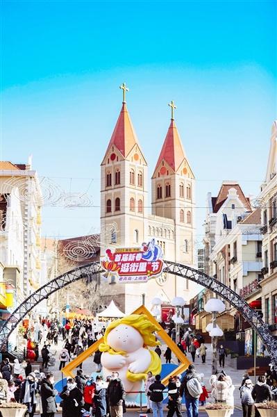 市南老城區(qū)節(jié)慶氣氛拉滿,游人如織。