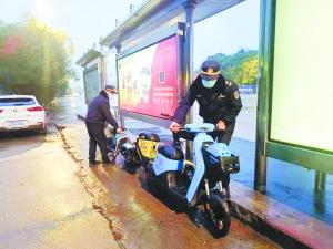 城管執(zhí)法隊(duì)員清理違停共享單車