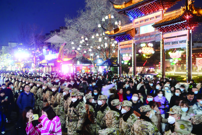 今年是南京秦淮燈會三年來首次恢復(fù)線下舉辦,從春節(jié)假期內(nèi)開始,夫子廟景區(qū)人流量就始終高漲。為了確保安全,除了夫子廟景區(qū)內(nèi)有大量武警、公安、消防等多部門投入大量力量,在景區(qū)周邊,還有大量城管執(zhí)法人員堅守保障。