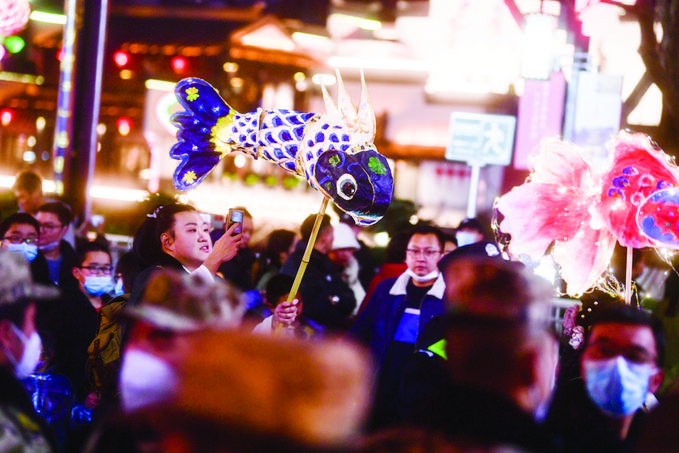 今年是南京秦淮燈會三年來首次恢復(fù)線下舉辦。2月5日正月十五元宵節(jié)當(dāng)晚,記者現(xiàn)場探訪發(fā)現(xiàn),由于實行預(yù)約進(jìn)場、嚴(yán)格分流,夫子廟景區(qū)內(nèi)雖然人氣熱鬧,但人流總體井然有序,并沒有出現(xiàn)寸步難行的情況。市民游客可較為舒適地觀賞燈彩、感受濃濃年味。