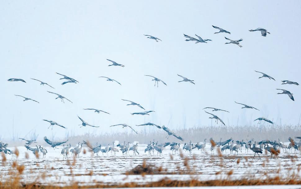 除了天鵝等游禽,雁鴨類的種群數(shù)量也明顯上升。去年冬天,總共有450只灰鶴在官廳水庫越冬,如今,南來的灰鶴與越冬灰鶴合群,數(shù)量上升到了600多只。此外,隊員們還監(jiān)測到了遠(yuǎn)道而來的白枕鶴、鴻雁、豆雁、赤麻鴨、羅紋鴨等。