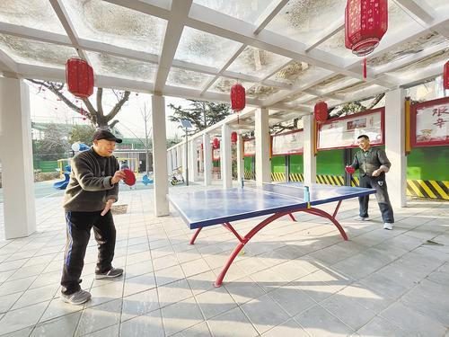 2月22日一早,團結(jié)里社區(qū)小廣場上,63歲的市民蔣艷麗和鄰居在球臺上打起乒乓球。