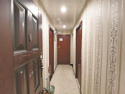 效果如何?記者對(duì)103號(hào)、104號(hào)兩幢小高層進(jìn)行了“掃樓”,這兩幢樓最近多次被投訴。幾個(gè)樓層一跑,群租房的一些外觀特點(diǎn)不難辨別:房門大多還是交房時(shí)的原鐵門,一些只是將門鎖換成了密碼鎖,門上貼滿“開(kāi)鎖”“搬家”小廣告無(wú)人清理……103號(hào)樓402室的鐵門半掩,看進(jìn)去只能看到一條直角過(guò)道,兩側(cè)排布5個(gè)房間,均房門緊鎖,1個(gè)門上還貼著寫有“已租、勿擾”的紙條。過(guò)道里裝有感應(yīng)燈,上方架有路由器,地上擺著垃圾桶和滅火器,此外別無(wú)他物。整套房子的原結(jié)構(gòu)已一點(diǎn)看不出來(lái),過(guò)道入口處墻壁上高處嵌著一只燃?xì)恻S色開(kāi)關(guān)閥門,大概可以猜測(cè)出這里曾是廚房的位置;104號(hào)樓401室也是房門開(kāi)著,里面結(jié)構(gòu)與上述402室相似,只是房間有6個(gè)。其中1個(gè)房間門上插著鑰匙,擰開(kāi)一看里面應(yīng)是原衛(wèi)生間的一部分,如今已被改造成了洗衣房。