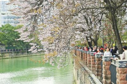 春天里,成都錦江邊上的泡桐花開(kāi)滿枝頭,吸引眾多的市民前往觀賞拍照。 袁義明 攝