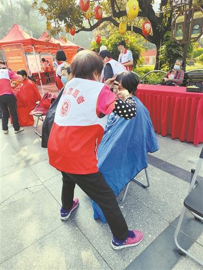 初老志愿者為市民提供義剪服務(wù)。記者 莫偉濃 攝