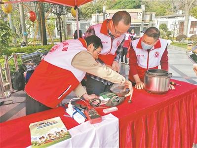 帶上萬(wàn)能表、螺絲刀、“士巴拿”,拖著工具箱,召集“老”伙伴,出發(fā)!2023年3月15日,一個(gè)風(fēng)和日麗的日子,粵暉家電義修隊(duì)在廣東省老干部大學(xué)的一片空地上擺開(kāi)了“家當(dāng)”,開(kāi)始了他們的義修活動(dòng)。現(xiàn)場(chǎng)外圍,已經(jīng)有拿著待修電器的群眾排起了長(zhǎng)隊(duì)。長(zhǎng)長(zhǎng)的工作臺(tái)上,各種小家電和工具一一鋪開(kāi),隊(duì)員們認(rèn)真細(xì)致地檢查小家電的故障。在他們的熟練操作下,不管是一個(gè)壞掉的電熱水壺,還是一個(gè)“停擺”的電飯煲,一番“搗鼓”之下就又可以正常運(yùn)轉(zhuǎn)了。除了需要更換零配件收取很少的成本費(fèi)以外,隊(duì)員們?nèi)橇x務(wù)為街坊們維修。很少人知道,義修家電這件事,粵暉家電義修隊(duì)已經(jīng)連續(xù)干了十年。