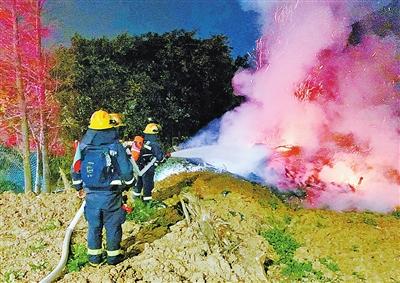 2月27日,有人在平沙鎮(zhèn)南新大道平沙往斗門方向一處露天堆垛上點(diǎn)火引發(fā)火情,消防救援人員前往滅火。 通訊員 賀煜茜 梁雅倩 攝