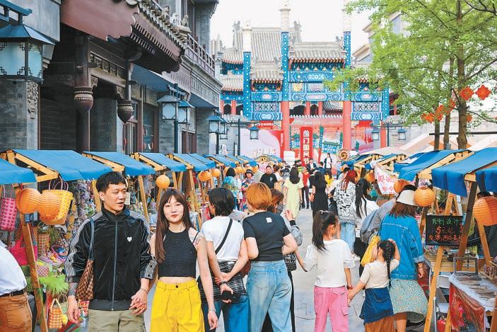 清脆悅耳的銅鈴聲中,一批批游客涌入前門大街,開啟文化之旅;游人如織的王府井大街上,人們沉浸式感受市井繁華;在車水馬龍的西單商業(yè)街,一座座商場煥發(fā)新的生機。今年以來,傳統(tǒng)商業(yè)街恢復(fù)了活力,大批市民和游客前來消費休閑,中國潮、國際范、煙火氣在這里交融共生。