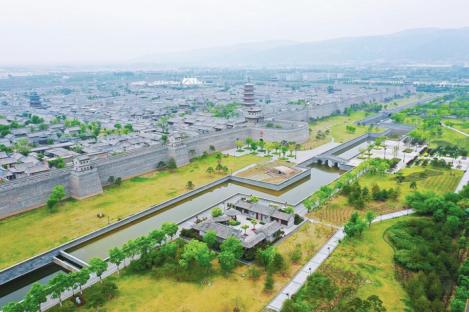 5月9日,遠眺之下,太原古縣城內(nèi)外,綠樹環(huán)抱,一派綠意盎然的美麗景象。入夏以來,古縣城景區(qū)與古城公園的生態(tài)美景遙相呼應,處處生機勃勃。(記者 阮洋 攝)