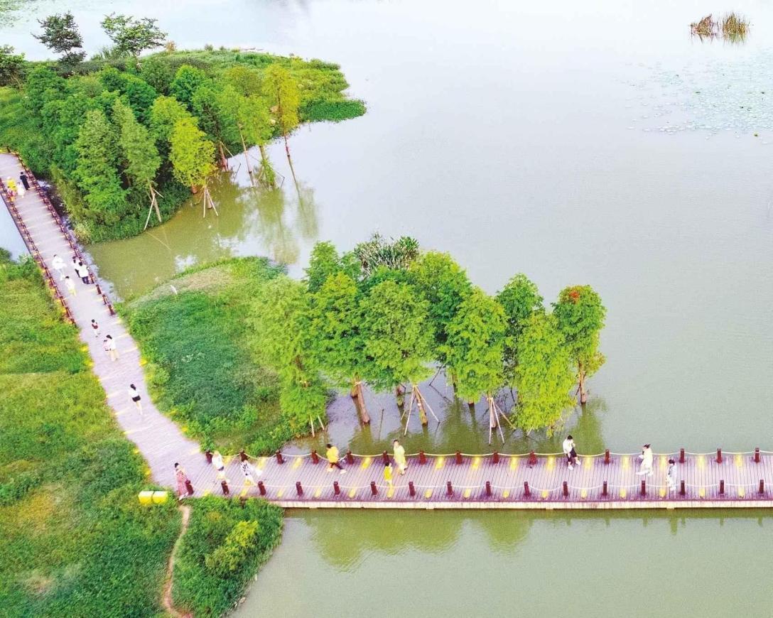 可利江濕地明月湖公園風光宜人。 記者 梁楓 攝