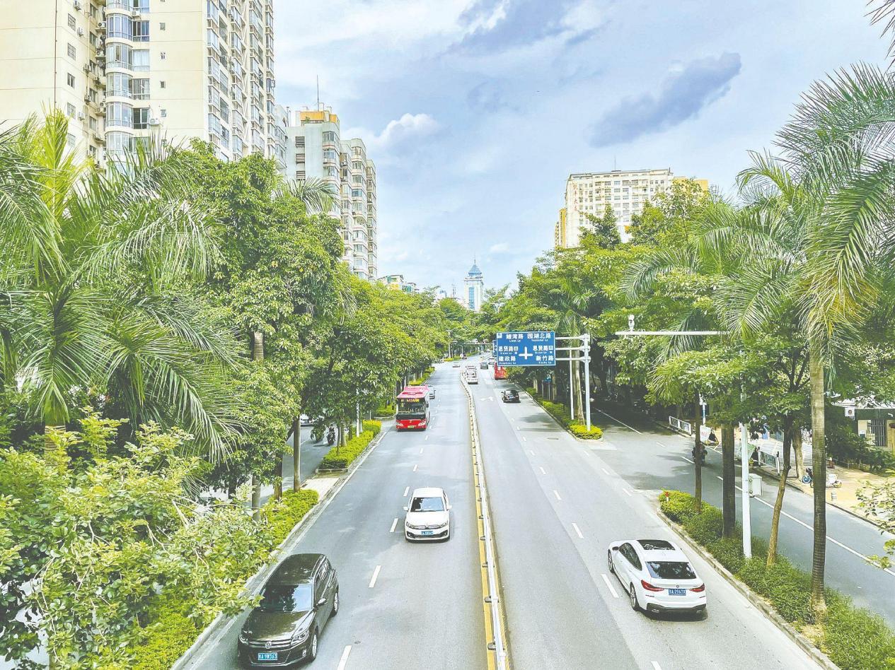 東葛路上,大王椰等各類行道樹挺立在道路兩側(cè),形成獨特的景觀。記者 黃紅錦 攝
