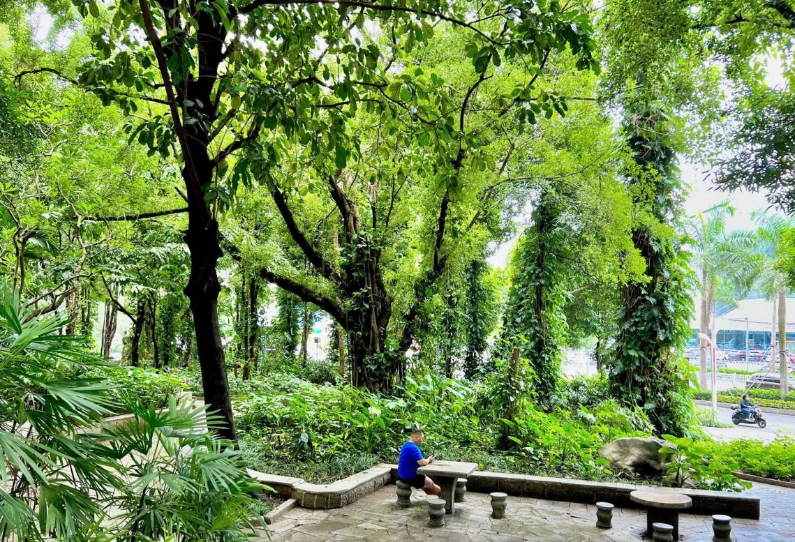 民族大道古城路口附近的街邊小公園,熱帶雨林植物錯落有致。記者 潘浩 攝