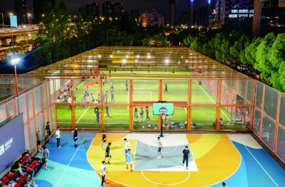 今夏,西城·夜未央運(yùn)動街區(qū)的燈光球場上,不少上班族結(jié)束一天的工作后來此運(yùn)動休閑。記者 段仁虎 攝