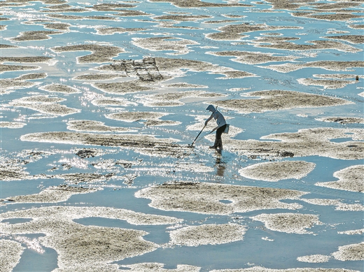 漁民在馮家江出海口灘涂耕海作業(yè)。