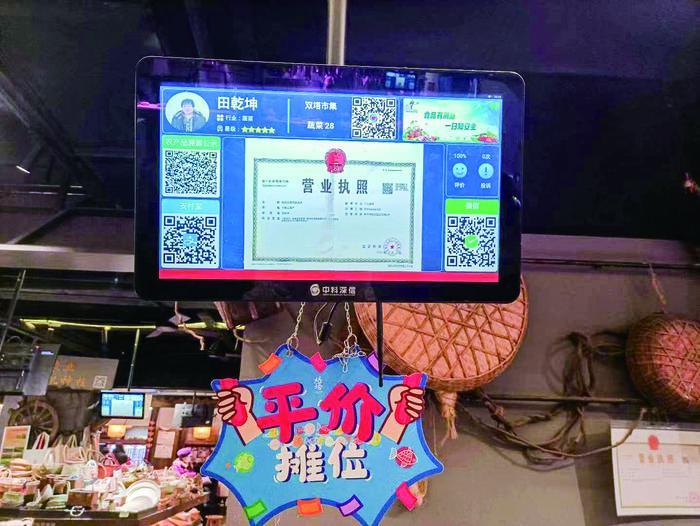 經(jīng)營戶檔案、菜價、營業(yè)執(zhí)照、溯源公示、付款二維碼……在雙塔市集,這些信息全部被集中在一塊清晰的顯示屏上,一目了然,這樣的顯示屏是生鮮區(qū)中每個商戶的“標(biāo)配”。對于老百姓們最關(guān)心的農(nóng)藥殘留問題,也能在顯示屏上找到答案。在雙塔市集,每年被送檢的樣品約1.1萬個。以天為單位,在規(guī)定時間檢測完畢后,結(jié)果被上傳至政府網(wǎng)絡(luò)平臺,同時在顯示屏上進行公示,方便查看,讓市民更加放心、舒心。