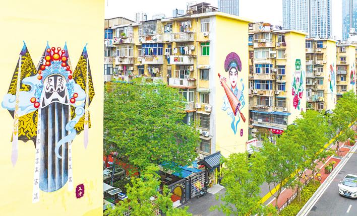 10月8日,改造后的武漢市江漢區(qū)北湖環(huán)保社區(qū)外墻上的京劇彩繪,展示生旦凈末丑人物臉譜。2023年,武漢將老舊小區(qū)改造與城市更新單元相結(jié)合,聚焦“一老一小”重點(diǎn)人群,啟動(dòng)8個(gè)成片改造示范點(diǎn)項(xiàng)目,不斷提高小區(qū)居民生活品質(zhì)。截至目前,今年全市已完成269個(gè)老舊小區(qū)改造。(記者 薛婷 攝)
